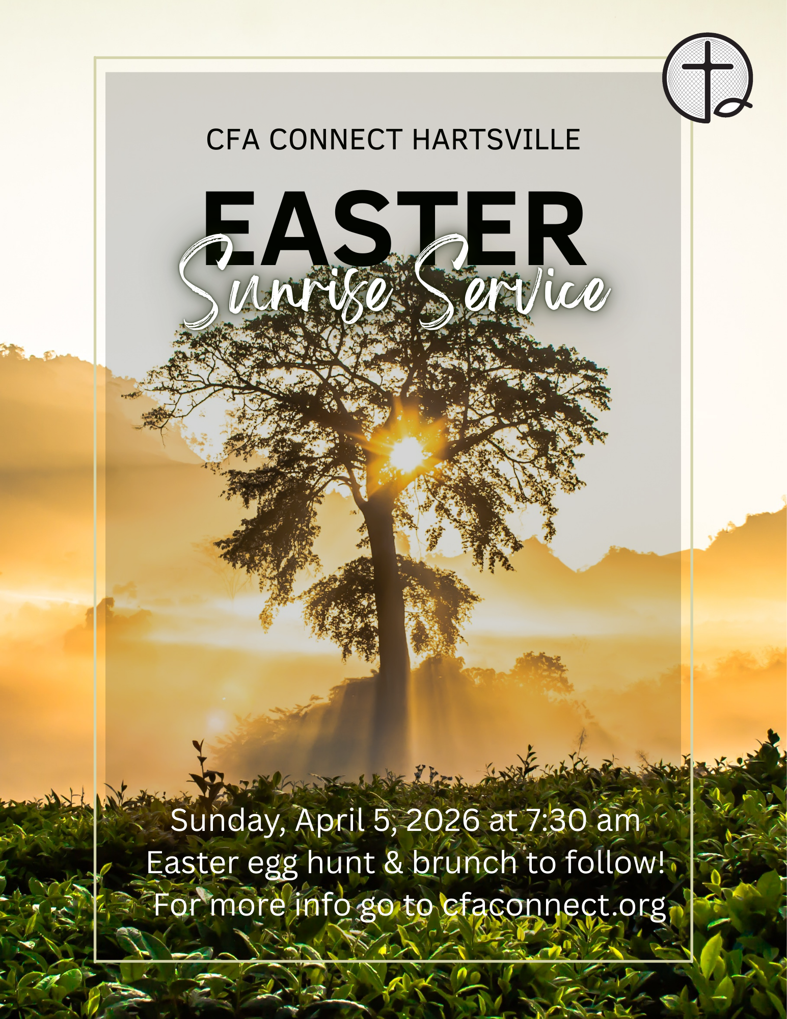 Join us on Sunday, April 5, 2026 at 7:30 am for our Easter sunrise service. Invite your family and friends to join us in our celebration of the resurrection of Jesus. We will have an Easter egg hunt for children ages preschool through fifth grade followed by a brunch for everyone! We can’t wait to see you. Please sign up below so we know who is coming!